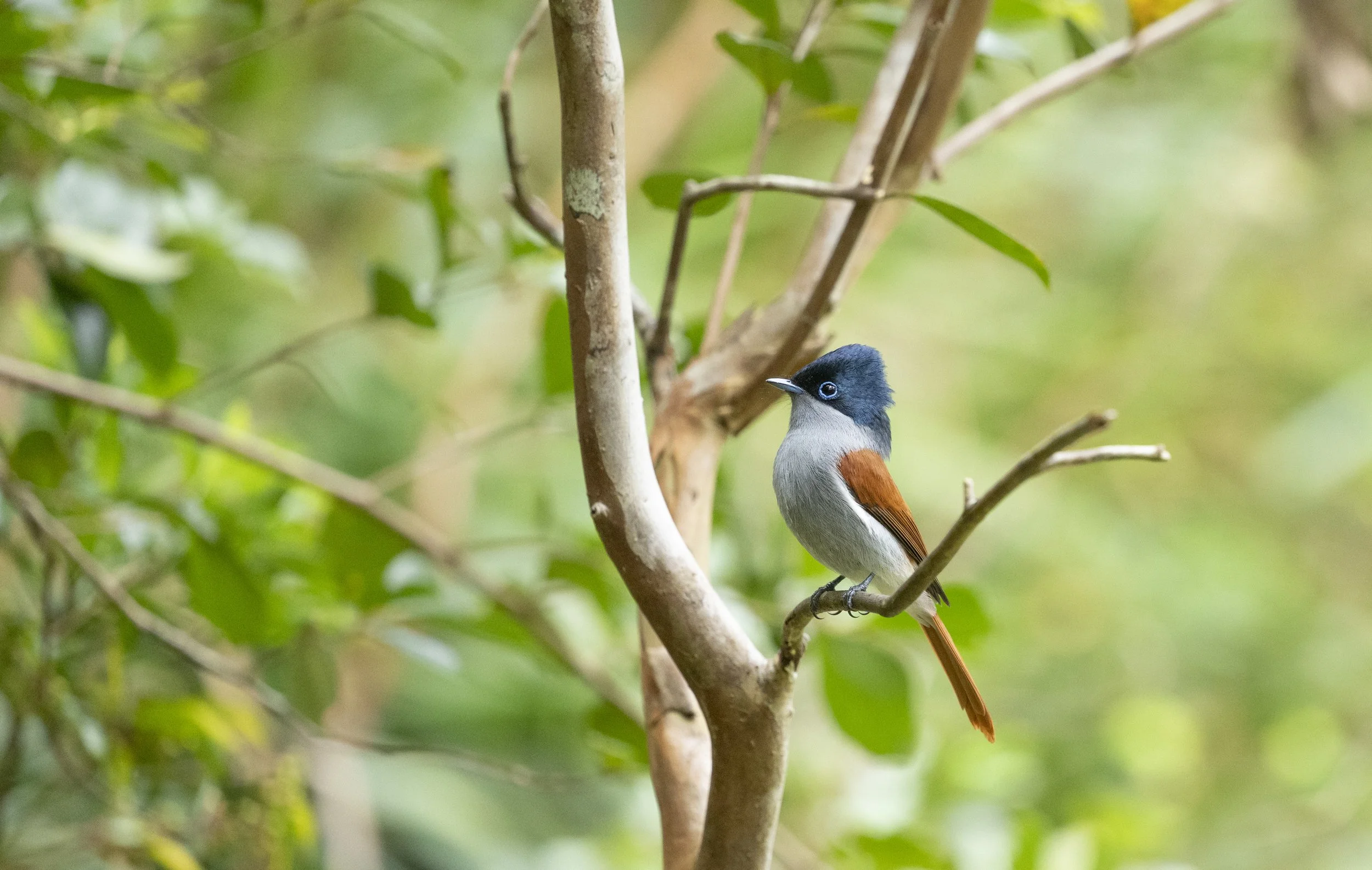 Aussi appelé Terpsiphone de Bourbon ou encore gobe-mouche de paradis de La Réunion (Terpsiphone bourbonnensis), c’est un passereau. Et chez les passereaux, c’est un gobe-mouche : un insectivore qui chasse à l’affût, depuis une branche.