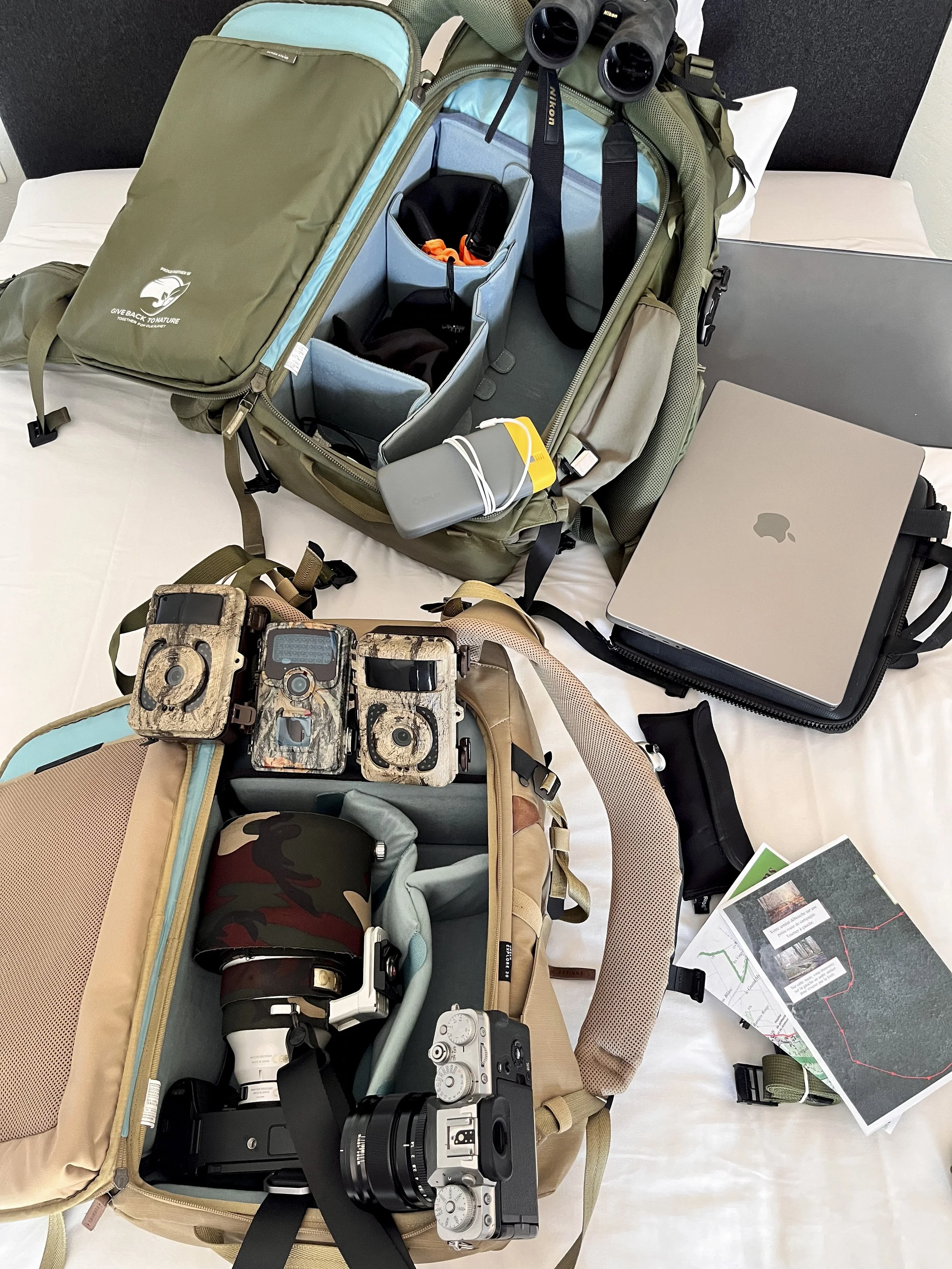 J’utilise le premier pour mes sorties animalières, mes voyages, randos et missions vidéo — je peux y glisser micros, moniteurs, trépieds. Le second me suit au quotidien, pour emporter un ou deux boîtiers et quelques objectifs. Je l’utilise sur la majorité de mes missions hors vidéo et animalier.